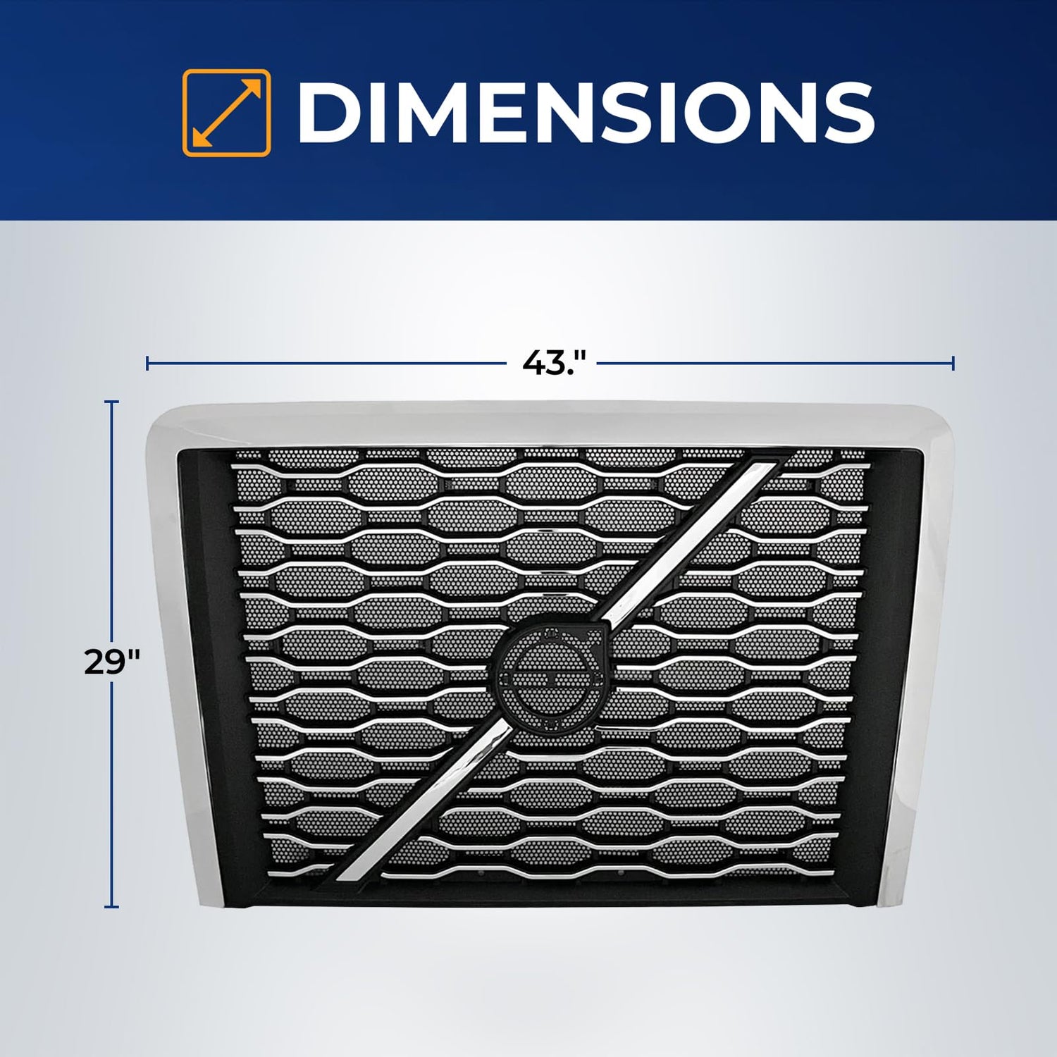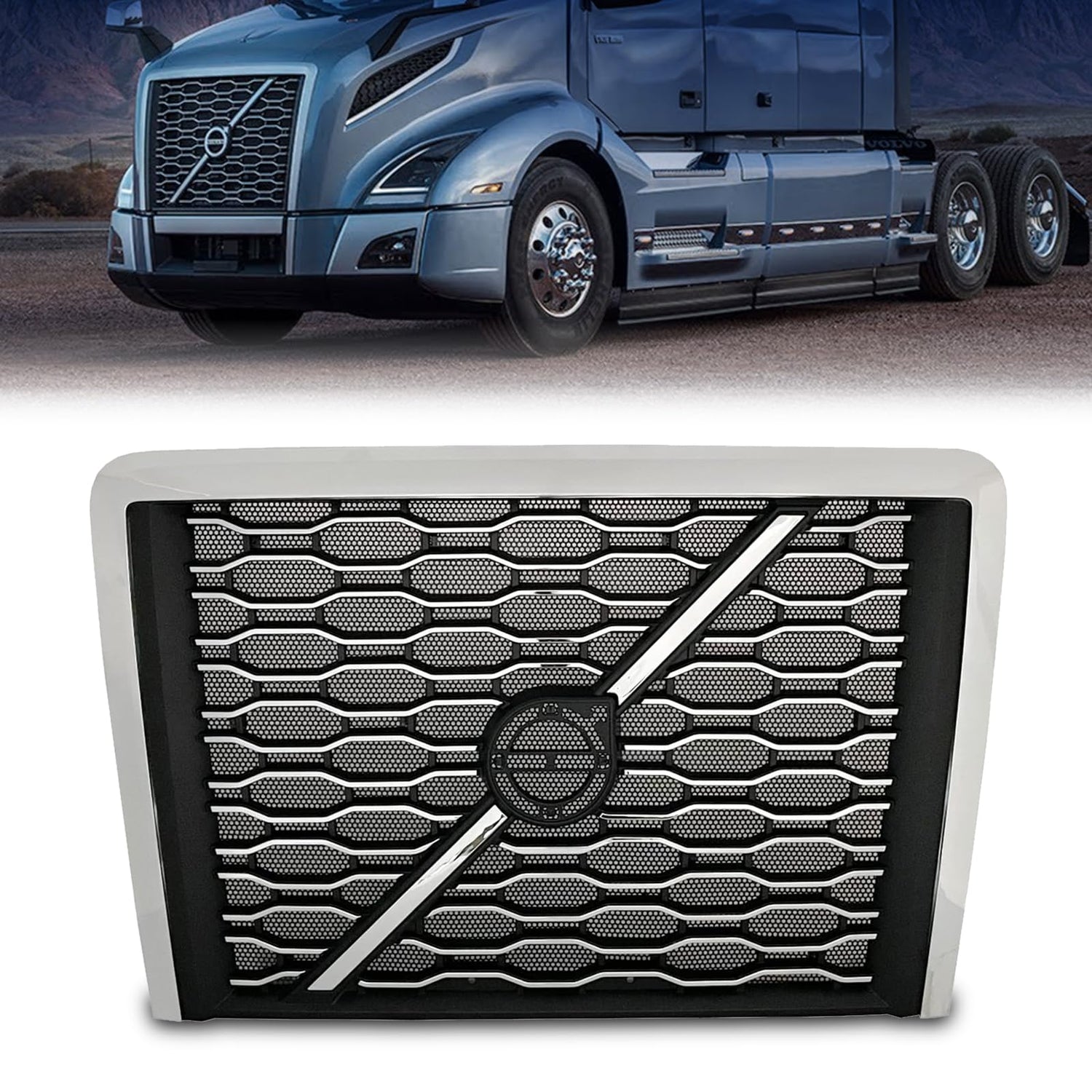 Grille for 2018-2024 Volvo VNL Trucks | Replacement Volvo 84724159 | with Bug Screen | Chrome