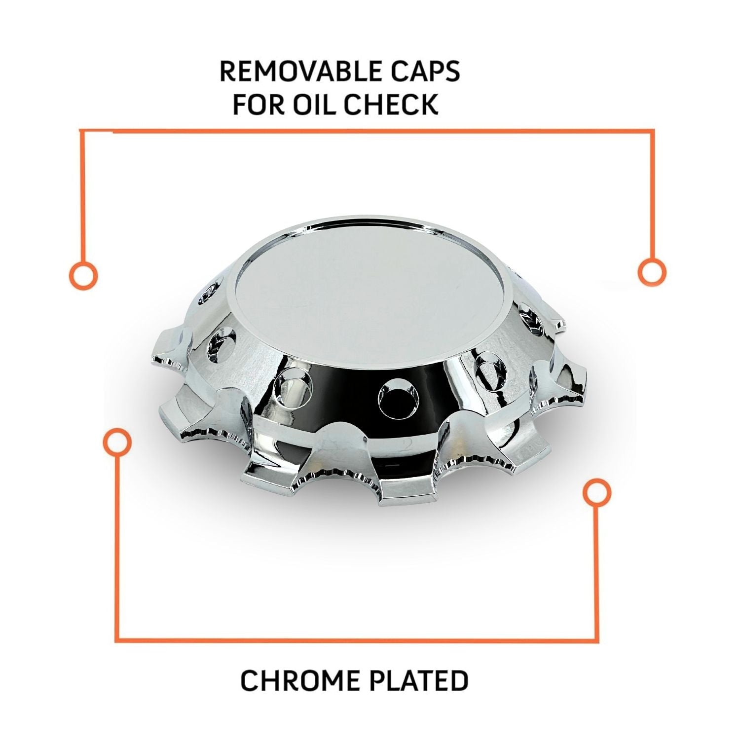 Compatible with most 20", 22.5", and 24.5" wheels that have a 10-hole (11.25" bolt circle) pattern.Durable Chrome-Plated ABS Construction