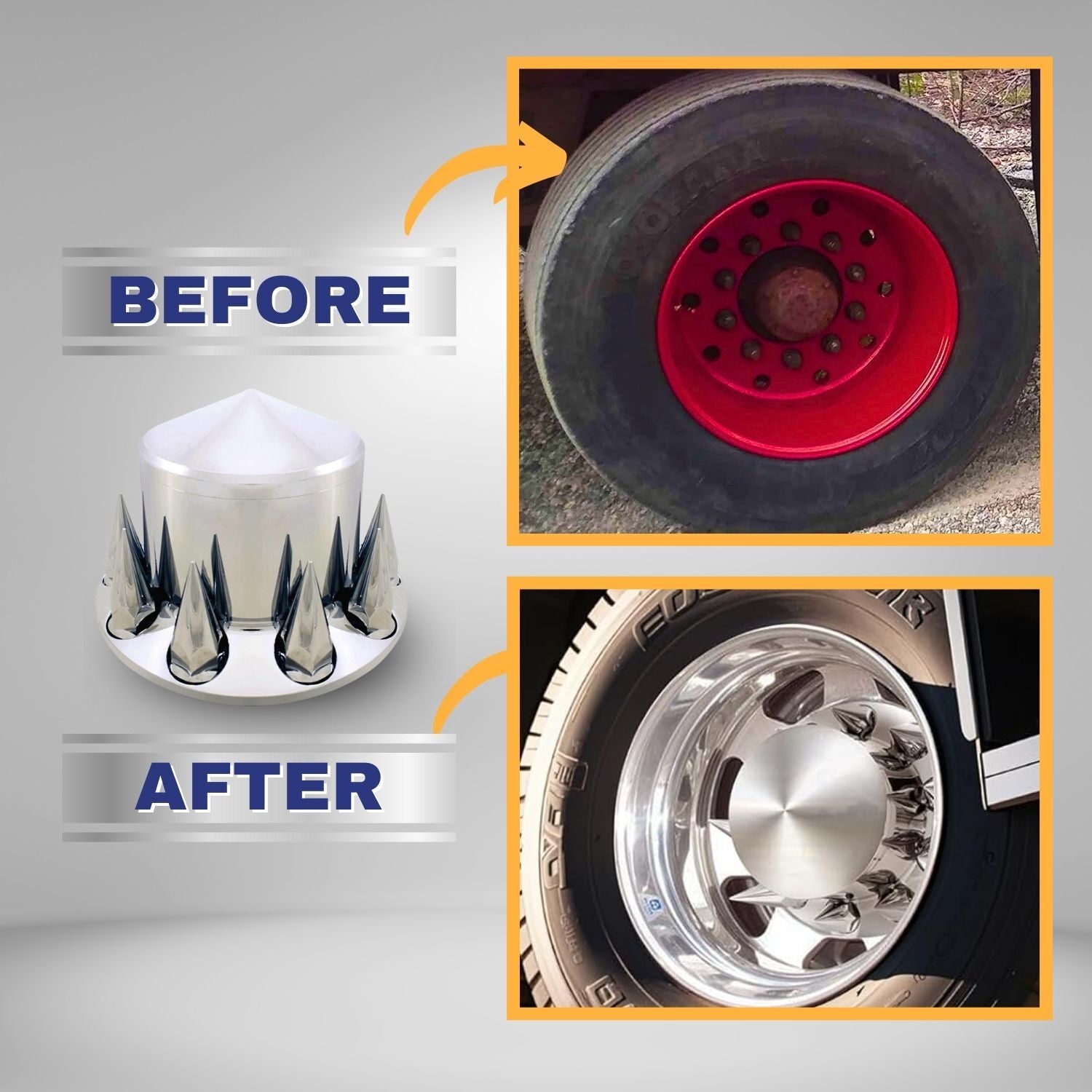 ✅ Aggressive Spike Design: Adds a bold and custom look to your semi truck’s rear wheels.