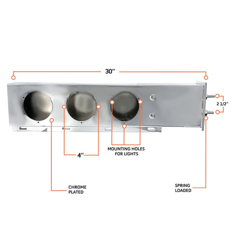 TORQUE 30" Chrome Mud Flap Hanger with 6 of 4" Light Cutouts