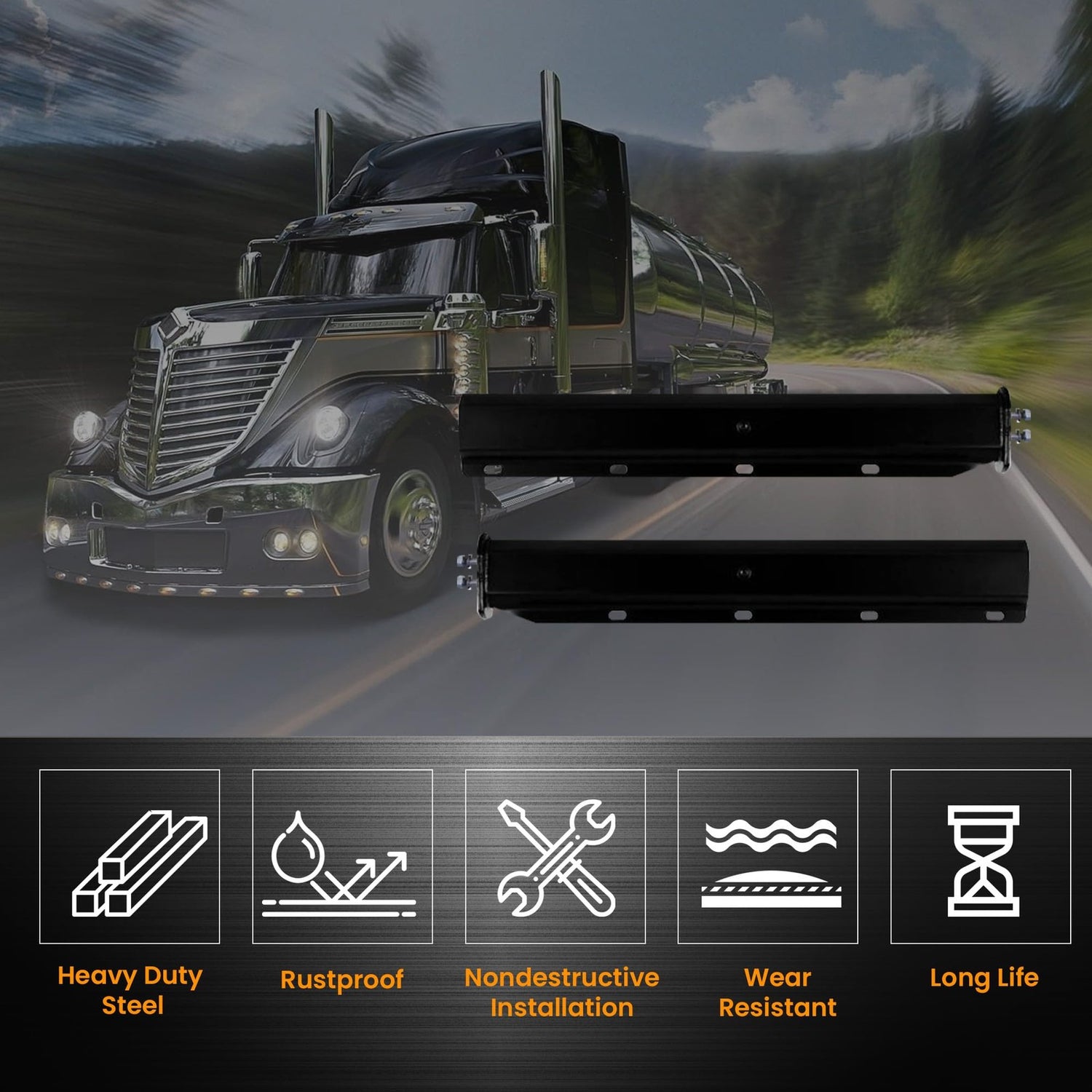 Black Mud Flap Hanger Pair Set 30 Inch Straight Angled 2-1/2 inch Bolt Pattern