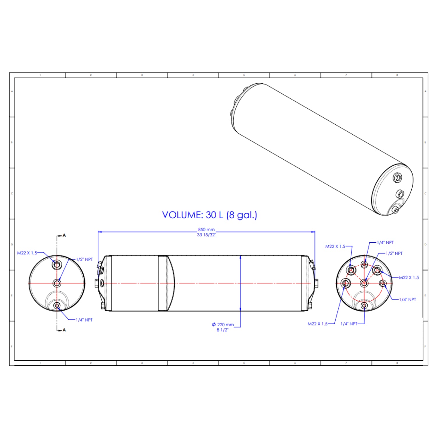8-Gallon (30L) Capacity Air Tank, 10-Port (TRAT3553370C92)