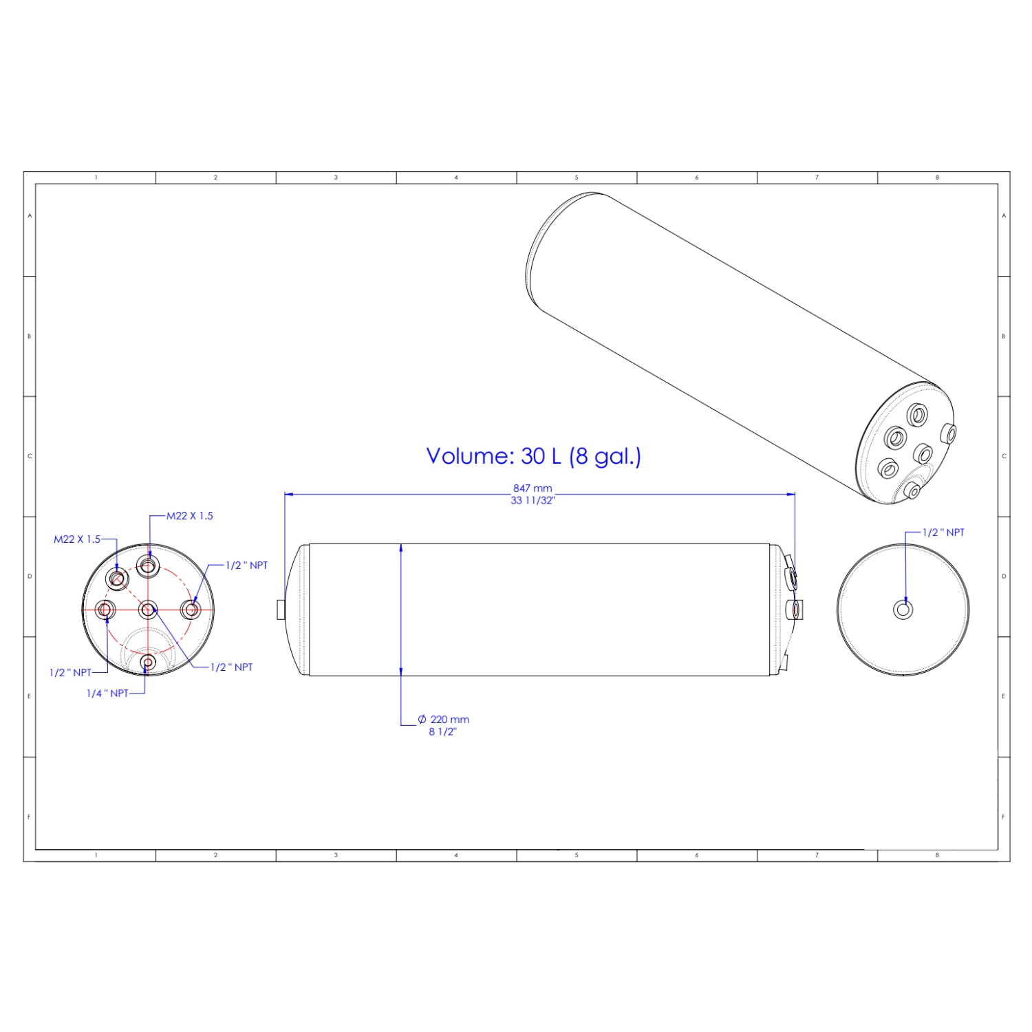 8-Gallon (30L) Capacity Air Tank, 7-Port (TRAT3553374C91)